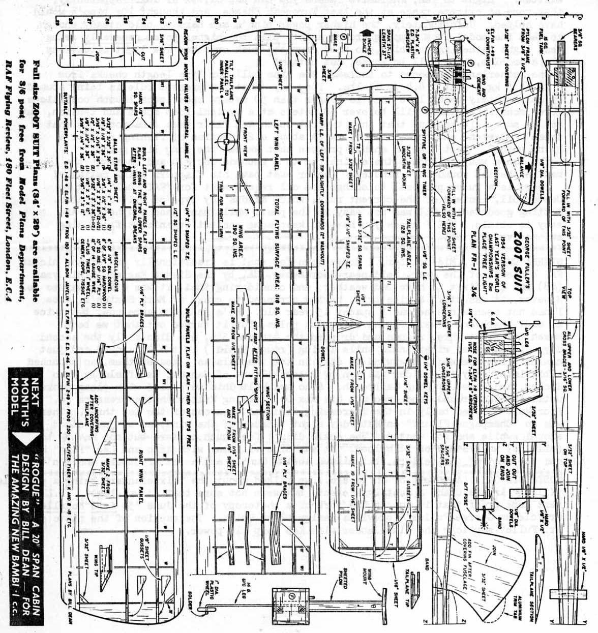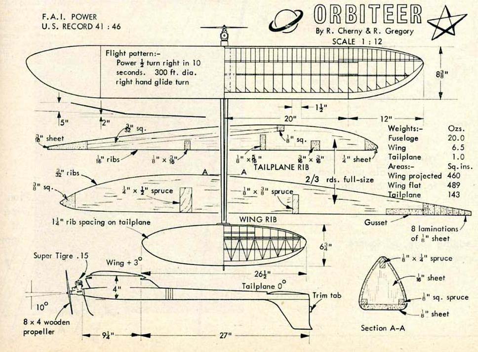 As per the rules above, the Vintage FAI Power event covers a time frame where there were distinct eras of rules involved. Below is a presentation of some of the models that we have information on to date, they are arranged by era. There are also many more models, from these Vintage Eras, in the "Models" section that have yet to be incorporated into this presentation. All of the plans and 3-views presented in this section are however also contained in the "Models" section. Eventually these presentations will evolve to the point where the all the models are presented in both this "Vintage FAI Power" section and in the more general "Models" area Era 1 - 1951-1955: 20 Second engine run with older lighter power and surface area loadings, a cross section rule and requirement to ROG. (see rules above for more details)